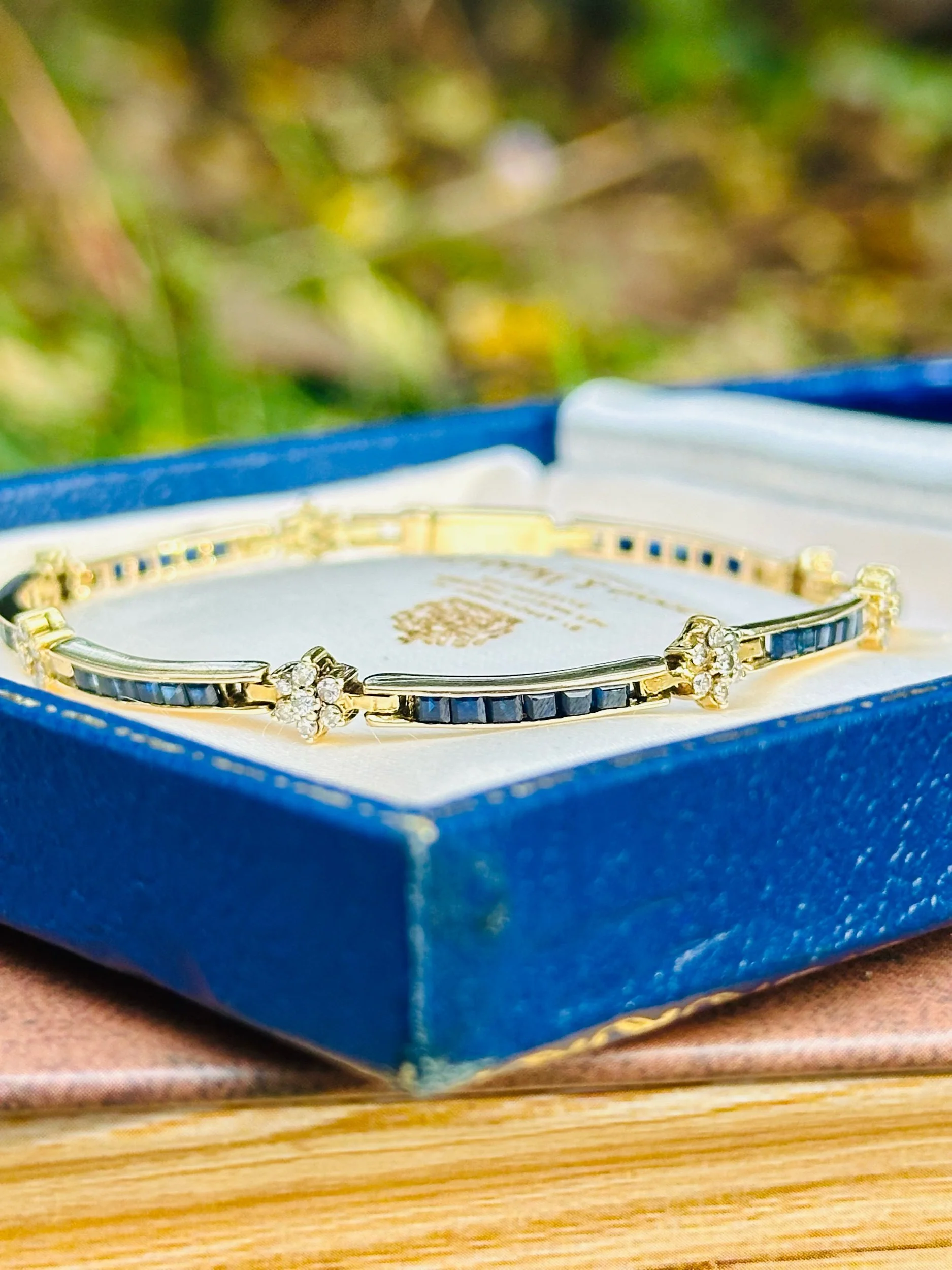 A jewel with all the quiet poise of the Jazz Age, this finely wrought Art Deco bracelet is crafted in 10ct white gold and set with five deep midnight-blue sapphires. Its elegance lies not in ostentation but in the extraordinary discipline of its design: a sequence of geometric panels, each crisply engraved with the linear motifs that defined the 1920s - an era when architecture, jewellery and even literature seemed united in their admiration for symmetry and modernity..